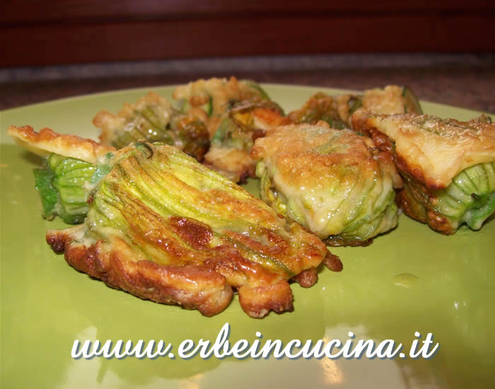 Fiori di zucchinaI fiori di zucchina possono essere cucinati in molti modi, ma l'importante è che siano consumati appena raccolti, altrimenti appassiranno.